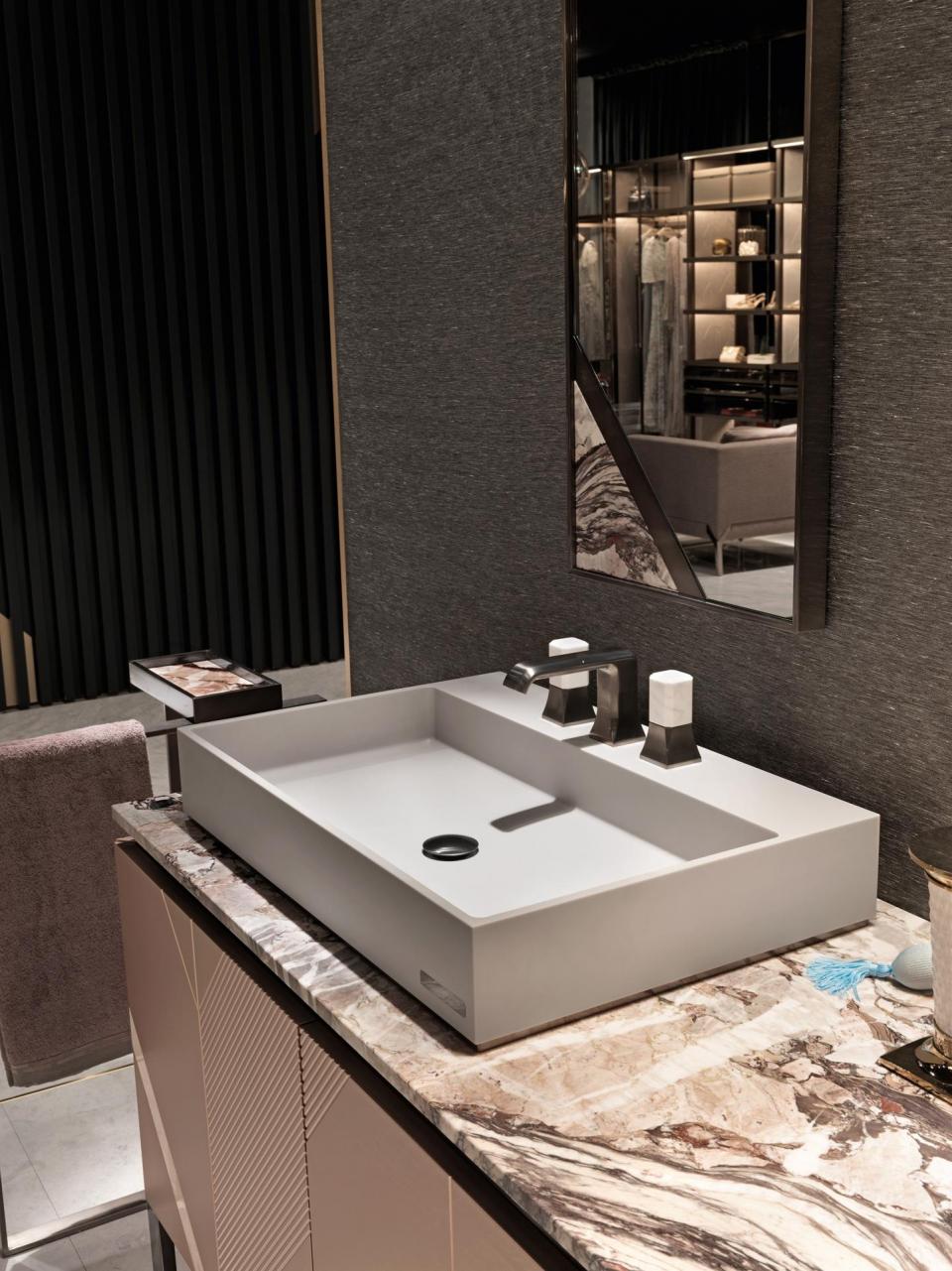 Factory Custom Made Luxury Natural Marble Top Washstand 11/04/2020 | No Comments Factory Custom Made Luxury Natural Marble Top WashstandThe luxurious marble countertop washstand, cabinet with bright spray paint, full of fashionable atmosphere.